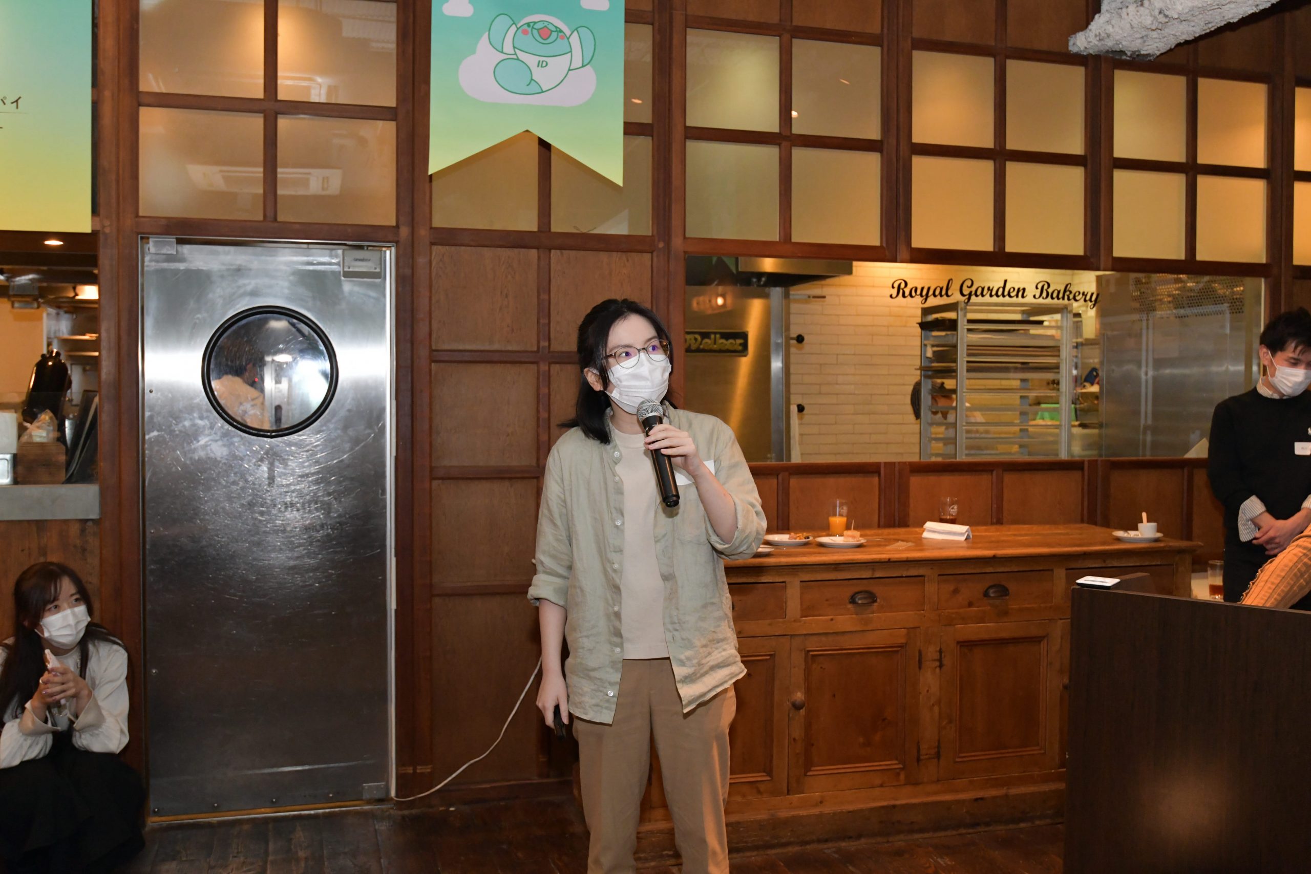 「皆さんもそうだと思うんですけど、メンバーが一堂に集まるのって2年半ぶりなのでめちゃくちゃワクワクしてます。せっかくの機会ですし、普段話さない人ともどんどん話してみてください。今日この場で話したことがきっかけとなって仕事がしやすくなったり会社の居心地が良くなったりということにもつながると思います。ぜひ楽しんでください。」