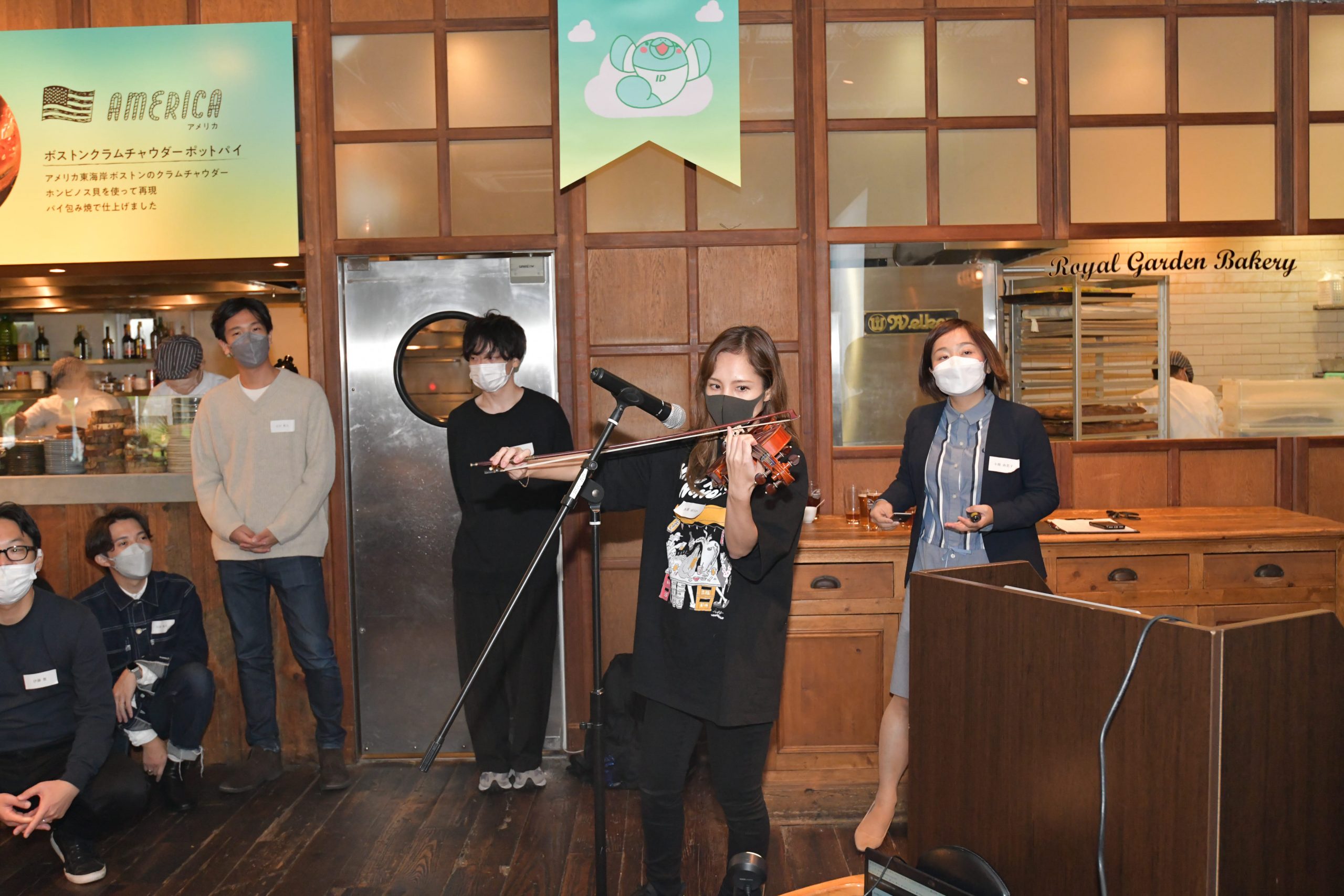 ↑3歳から続けているというバイオリンの生演奏を披露。エトピリカが参加者の心に沁み渡る。